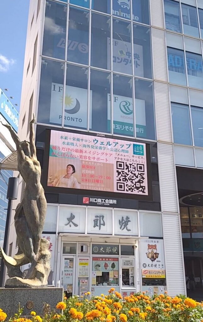 川口駅をご利用の際は、ぜひ駅前の大型ビジョンをご覧ください。皆様のご来店を心よりお待ちしております。